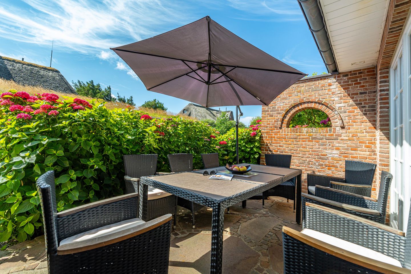 Genießen Sie Ihren Urlaub auf Sylt in einem stilvollen Domizil, eingebettet in ein wunderschön eingewachsenes Grundstück in ruhiger Lage. Das Malepartus wird persönlich vom Eigentümer geführt und liegt in einer charmanten Einbahnstraße, umgeben von neuen Reetdachhäusern.